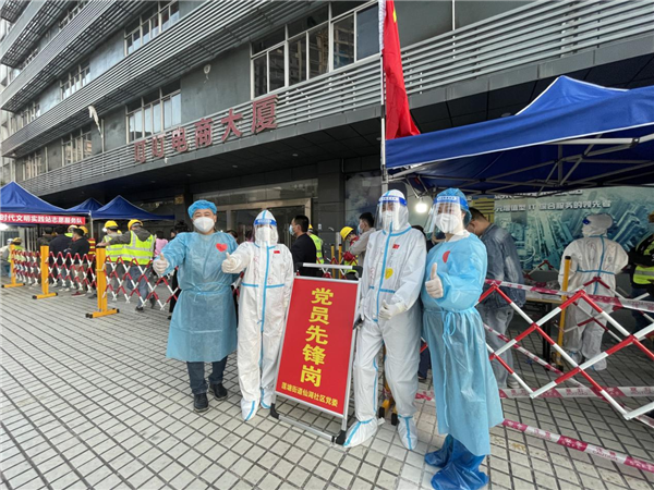 在核酸檢測點,黨員志愿者們積極協(xié)助排隊的居民完成信息登記、打卡場所碼、維持秩序、入口查驗、掃粵酸碼,從源頭上提高采樣效率。一個個流程下來,一站就是3個多小時,黨員志愿者們卻是越忙活越開心,也帶動了園區(qū)和周邊小區(qū)越來越多的黨員參與到核酸檢測點志愿服務中。