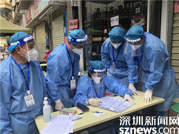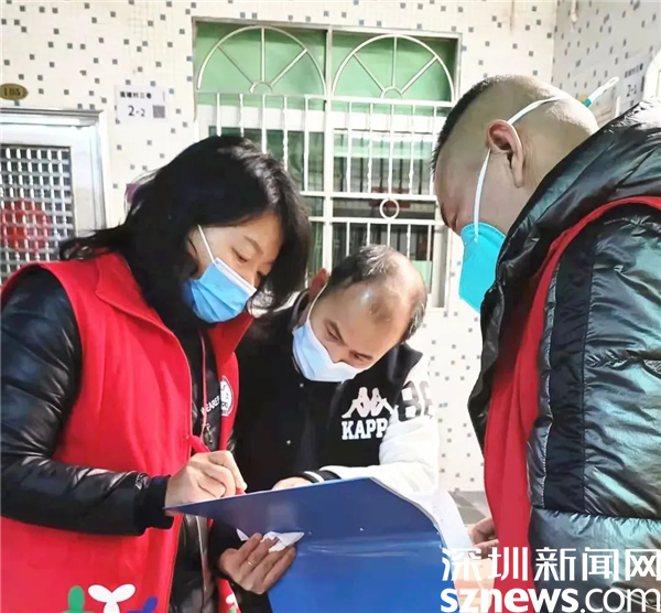 羅湖區(qū)婦聯(lián)副主席田林(左一)支援社區(qū)抗疫
