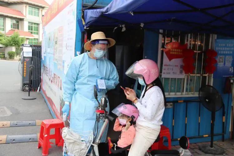 當(dāng)天下午,坪山區(qū)深港澳青年創(chuàng)新創(chuàng)業(yè)基地義工服務(wù)隊(duì)繼續(xù)來(lái)到秀新社區(qū)核酸檢測(cè)點(diǎn)參加志愿服務(wù)。隨著氣溫升溫,穿著防護(hù)服也越來(lái)越容易熱,面屏上都是水汽,但是大家依然堅(jiān)守在各自的崗位上。