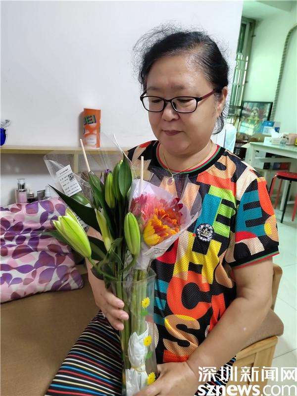 在活動(dòng)過程中,11位組員都收到了一束鮮花,是社工利用空余時(shí)間,捧著花送到每位組員家中的。社工用鮮花敲開組員的家門,這就仿佛是一次家訪,收到花的組員開心地與社工合影。花開的時(shí)候,不少組員都拍下來發(fā)在群里,讓快樂與美好的氣氛在群里彌漫。組員袁春艷在微信群里說:“感謝人美心善的社工們,在工作異常忙碌的同時(shí),不僅為我們精心準(zhǔn)備干貨滿滿、精彩絕倫的減壓課,還為我們送來鮮花的芬芳!讓我日常雜亂的家變得美麗精致、花香彌散、情趣高雅!真的有太多向您學(xué)習(xí)的地方!愛您!”