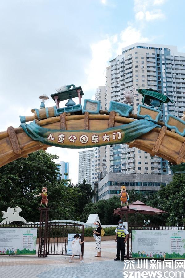 布滿(mǎn)童趣裝飾的東大門(mén),進(jìn)入公園前需出示健康碼和核酸檢測(cè)證明,做好疫情防控措施,為前來(lái)玩耍的孩子們一份安全保障。