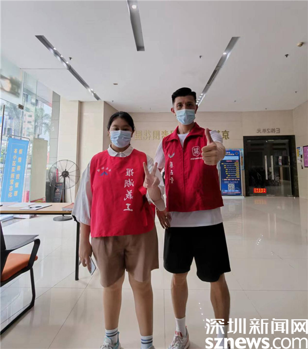 在老圍社區(qū)防疫一線,除了表兄弟,還有一對親姐妹,她們是陳嘉琪和陳嘉盈。兩姐妹相差2歲,一個上高中一個上初中。她們曾經(jīng)一起參加過老圍社區(qū)的文明城市創(chuàng)建活動,助力深圳創(chuàng)建文明城市,還利用周末時間清潔社區(qū)漂流書屋、整理書屋里的書籍。現(xiàn)在,姐妹倆又雙雙在小區(qū)卡口執(zhí)勤,為社區(qū)防疫貢獻(xiàn)力量。