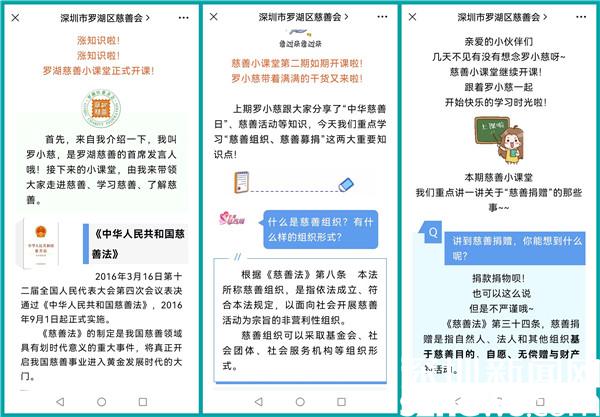為進(jìn)一步宣傳《慈善法》,普及慈善知識(shí),羅湖區(qū)慈善會(huì)通過“深圳市羅湖區(qū)慈善會(huì)”微信公眾號(hào)推出三期“慈善知識(shí)知多少”宣傳,針對(duì)慈善活動(dòng)、慈善組織、慈善捐贈(zèng)、慈善募捐、稅收優(yōu)惠等內(nèi)容,向社會(huì)公眾普及慈善知識(shí),傳播慈善理念,培育公民慈善意識(shí),規(guī)范慈善行為,倡導(dǎo)社會(huì)各界一起學(xué)善、知善、行善,弘揚(yáng)慈善文化,營(yíng)造良好慈善氛圍。
