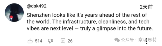 (“深圳看起來比世界其他地方領(lǐng)先好幾年。基礎(chǔ)設(shè)施、清潔度和科技氛圍都是一個(gè)新的水平——真正讓人看到了未來?!保?/p>