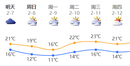 7-9日受冷空氣影響,轉(zhuǎn)陰天到多云,局部有零星小雨,氣溫逐日下降,8-9日氣溫將降至11-16℃左右,晝夜溫差減小,最大陣風(fēng)7級左右;10日白天氣溫回升,早晚有零星小雨和輕霧。