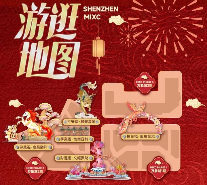 深圳萬(wàn)象城一、二、三期廣場(chǎng)將于春節(jié)期間舉辦新春花燈嘉年華,持續(xù)至3月3日。