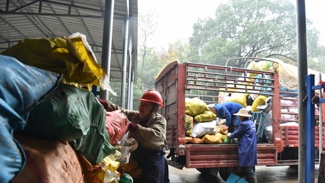 清晨,龍?zhí)拼灞崋T楊少強駕駛著電動三輪車挨家挨戶上門收取農戶生活垃圾,他邊收邊告訴星辰全媒體記者,“不可回收的,我就收集好放到密封式垃圾箱,由轉運公司每天運走;可回收的我就進行分類,再集中運到我們白箬鋪鎮(zhèn)分揀回收總站進行處理。”