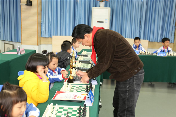 12月27日下午,2021年國際象棋特級(jí)大師葉江川走進(jìn)深圳小學(xué),與16名小棋手進(jìn)行了一場別開生面的車輪戰(zhàn)。
