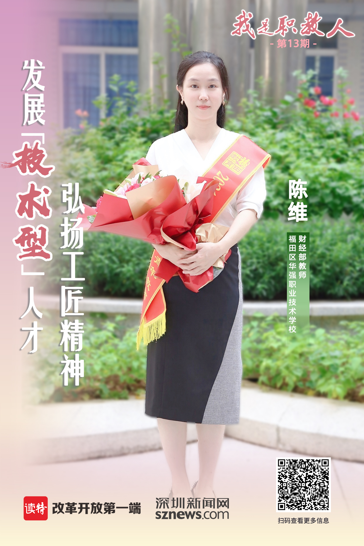 “對生活有熱愛,才會變得有趣;對生活和世界保持好奇心,才能擁有創(chuàng)造力和想象力?!睆氖侣殬I(yè)教育的第十年,深圳市福田區(qū)華強職業(yè)技術學校財經(jīng)部老師陳維,始終期望學生成為有趣、有技術、有創(chuàng)造力,能為社會做出貢獻的人。
