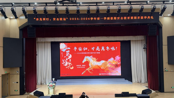 1月30日,光明交警走進市教育科學研究院實驗學校(光明),借助學校散學典禮平臺,以現(xiàn)場宣講與校內(nèi)直播相結(jié)合的方式,為全校2800余名師生開展“平安歸,才是真年味”主題交通安全宣傳教育活動,為師生寒假安全出行提前筑牢防線。