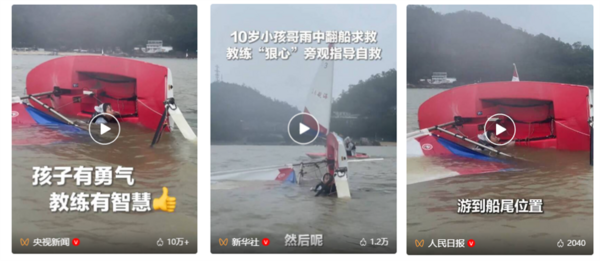深圳大鵬海域10歲少年雨中翻船自救、教練冷靜指導(dǎo)的視頻刷屏全網(wǎng),被央視點贊轉(zhuǎn)發(fā)。