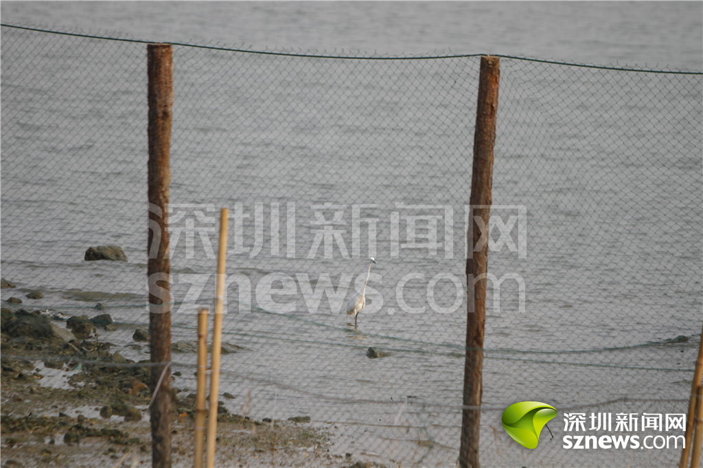 4月18日下午,記者來到深圳灣公園,發(fā)現(xiàn)網(wǎng)友所說的圍網(wǎng)區(qū)域位于廣東內(nèi)伶仃島福田國家級自然保護區(qū)內(nèi)。在現(xiàn)場記者沒有發(fā)現(xiàn)有海鳥受傷死亡的尸體,但是沿著海岸線,大量的圍網(wǎng)確實存在,圍網(wǎng)用藍色的尼龍繩制成,韌性很強,耐腐蝕。這些隔離網(wǎng)安裝在水陸交接的地方,用木樁固定,高度大概在1米左右,綿延在海岸線上,有的甚至一眼看不到盡頭。而對于這些網(wǎng)的用途,現(xiàn)場并沒有相關的提示和公告。
