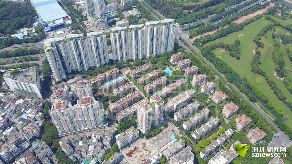 與白石洲臨近的高爾夫球場(chǎng)和高層建筑