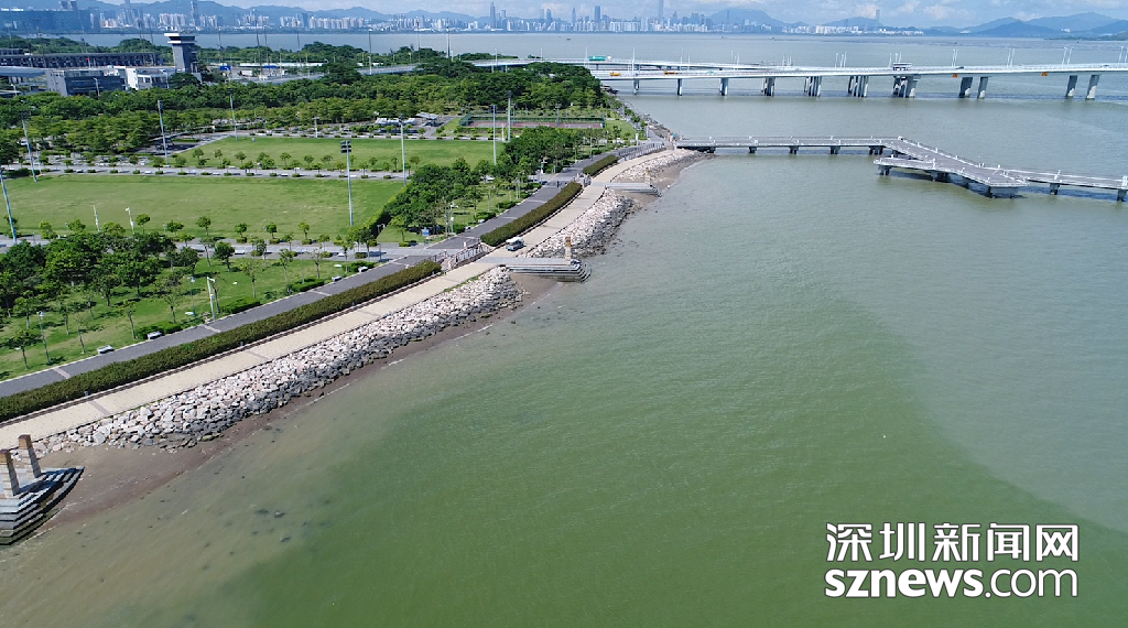 如果市民沿著步道繼續(xù)向西側(cè)行進,會發(fā)現(xiàn)E段蛇口望海的地段在歷史上曾為自然沙灘,石坡地形,向地面打進樁柱作為步道的支撐,因為E段有輸油管線,也讓休閑步道廣場變得別具一格,成為建設(shè)在管線上方的“空中廣場”。