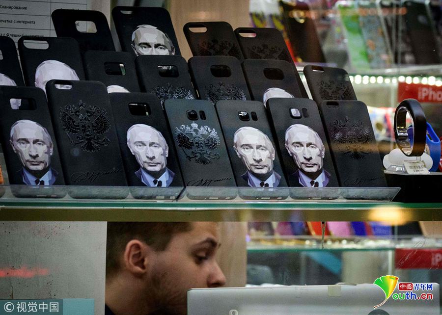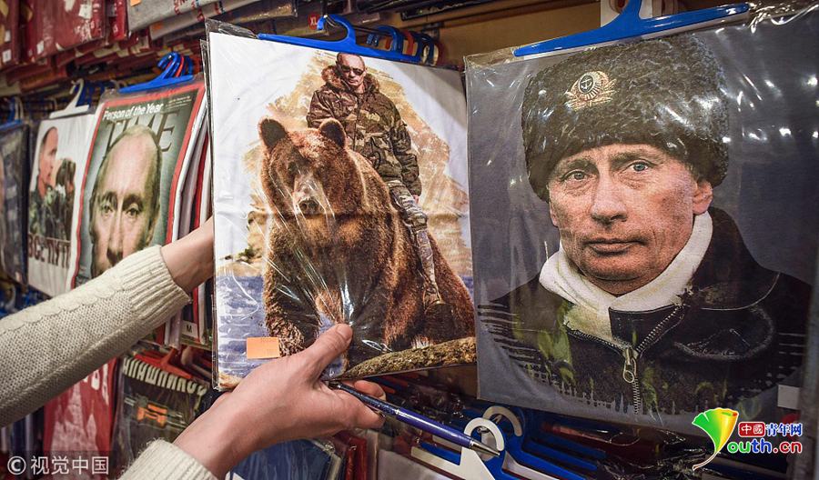 當(dāng)?shù)貢r(shí)間2018年3月13日,俄羅斯莫斯科,俄羅斯大選將于3月18日舉行,大選主題紀(jì)念品熱賣。