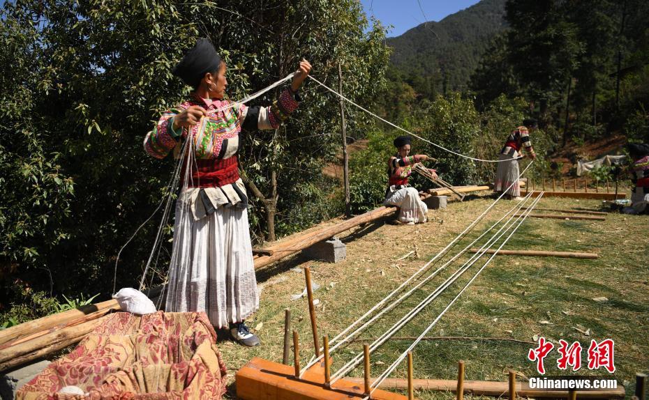 4月11日,傈僳族婦女正在繞麻線。四川涼山德昌縣南山傈僳族鄉(xiāng),一群傈僳族婦女圍坐一起,將火草搓成線與麻線交織一起織布做衣。隨著科技發(fā)展,傈僳族祖祖輩輩傳承的織布技藝面臨著傳承問題,當地希望通過展示,讓更多的人了解并喜歡純天然的火草麻布。中新社記者劉忠俊 攝