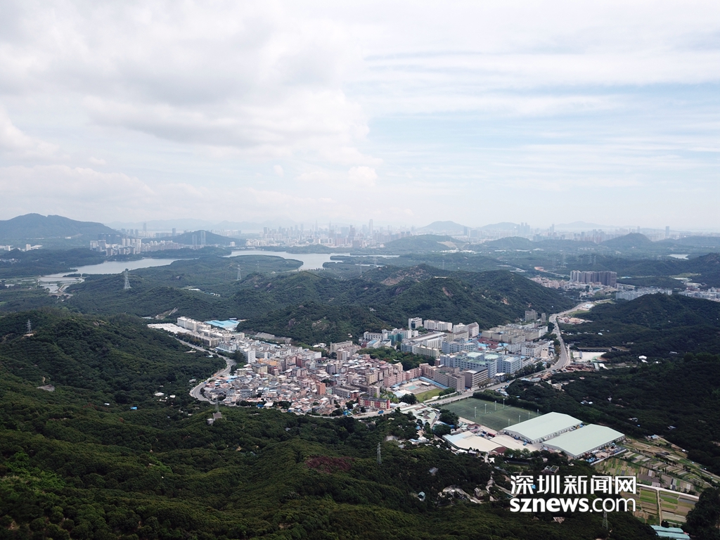 從羊臺山風(fēng)門凹山腰看西麗水庫及山腳下麻磡村
