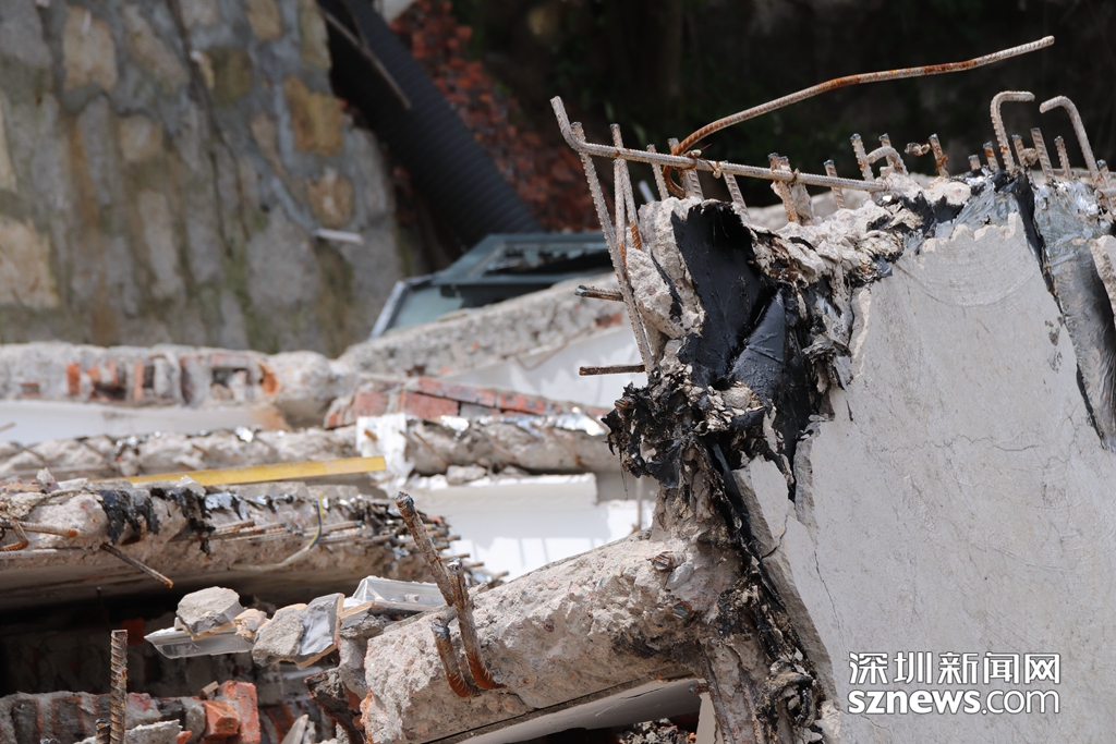 違法建筑拆除后,墻體露出的鋼筋
