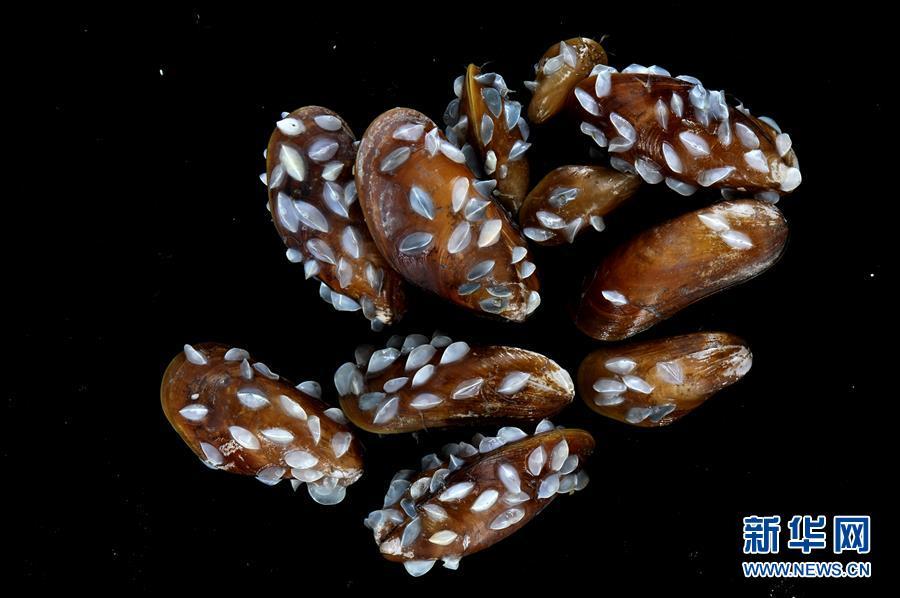 “深海勇士”號在“海馬冷泉”采集的貽貝樣品(5月19日攝)。新華社記者 張建松 攝