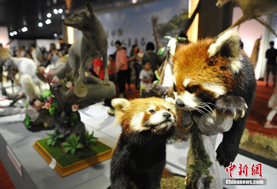 5月27日,各類飛禽走獸活靈活現(xiàn)地出現(xiàn)在民眾的眼前。正在福建博物院展出的第四屆中國動物標(biāo)本大賽的257件惟妙惟肖的標(biāo)本作品集中對外開放,讓民眾如進(jìn)入“動物世界”。本次大賽匯集了全國標(biāo)本制作企業(yè)、博物館、大專院校、研究所等60多家單位參加,標(biāo)本涵蓋哺乳類、鳥類、爬行類、兩棲類、魚類等動物類群的皮張和骨骼標(biāo)本。主辦方希望通過標(biāo)本大賽,向公眾展現(xiàn)動物世界的美麗,宣傳生物多樣性和生態(tài)文明,借鑒吸收國際標(biāo)本制作先進(jìn)經(jīng)驗,提高中國野生動植物標(biāo)本制作的整體水平。圖為大賽參賽作品小熊貓。中新社記者 張斌 攝