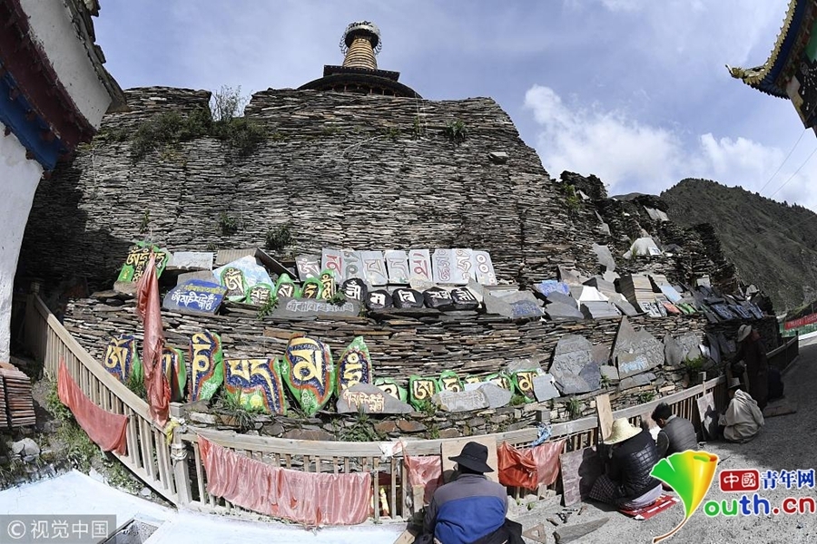 在四川阿壩州壤塘縣棒托寺內(nèi)珍藏約50萬片明清時(shí)期鐫刻的大藏經(jīng)《甘珠爾》和《丹珠爾》,大藏經(jīng)左高9.7米,右高9.2米,長(zhǎng)46米、左寬160米,右寬13米,占地598平方米,是目前全世界保存最完整、規(guī)模最宏大、內(nèi)容最豐富的石刻大藏經(jīng)孤品。據(jù)史料記載,由明末清初60余名石匠辛勤鐫刻9年而成。石刻藏文經(jīng)書圖文并茂,筆法流暢,疏密有致,陰陽相背,滿版生輝。具有極高的文物和藝術(shù)研究?jī)r(jià)值。圖為堆積的石刻大藏經(jīng)孤品。