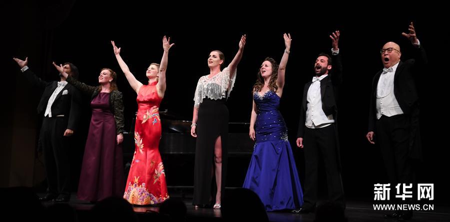 6月30日,在美國加利福尼亞州舊金山赫伯斯特劇院,著名華裔歌唱家田浩江(右一)和青年歌唱家們演唱《從茉莉花到圖蘭朵》。當(dāng)日,著名華裔歌唱家田浩江偕6位參加過iSING!國際青年歌唱家藝術(shù)節(jié)的歌唱家舉辦“田浩江舊金山演唱會(huì)”。iSING!國際青年歌唱家藝術(shù)節(jié)創(chuàng)辦于2011年,集教育、訓(xùn)練和演出于一體,為全球青年歌者提供學(xué)習(xí)和實(shí)踐的機(jī)會(huì)。在本場演唱會(huì)上,來自不同國家的藝術(shù)家們演唱中外經(jīng)典歌曲,為觀眾獻(xiàn)上一臺(tái)中西文化交融的聽覺盛宴。新華社記者吳曉凌攝