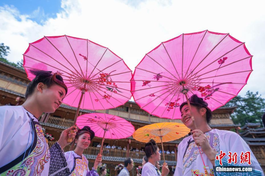 7月14日,貴州榕江,相思節(jié)上身著盛裝的侗族婦女。當日,貴州省榕江縣樂里七十二寨舉行“六月六”相思節(jié),當?shù)厣贁?shù)民族身著節(jié)日的盛裝,舉行盛裝巡游、吹蘆笙、踩歌堂等民俗活動歡度節(jié)日。中新社記者賀俊怡 攝