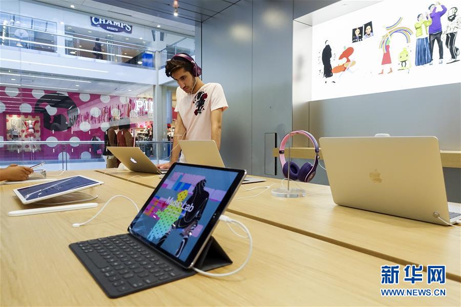 8月2日,顧客在美國(guó)紐約一家蘋(píng)果專(zhuān)賣(mài)店選購(gòu)商品。 新華社記者王迎攝