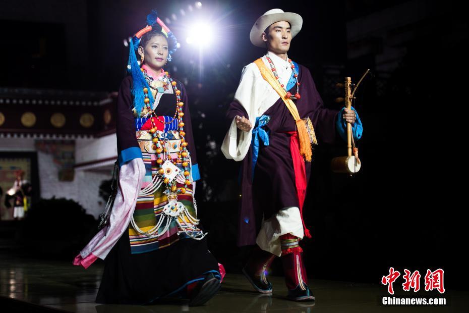 8月12日晚,由西藏職業(yè)技術學院與北京服裝學院共同打造的“凈美雪頓·美好生活”西藏民族服裝與服飾展演活動在拉薩舉行。現(xiàn)場通過傳統(tǒng)篇、現(xiàn)代篇與未來篇三個篇章,展演了藏族傳統(tǒng)服裝26套,設計創(chuàng)新服裝58套,共計84套服裝。圖為模特展示藏族傳統(tǒng)服飾。中新社記者何蓬磊 攝