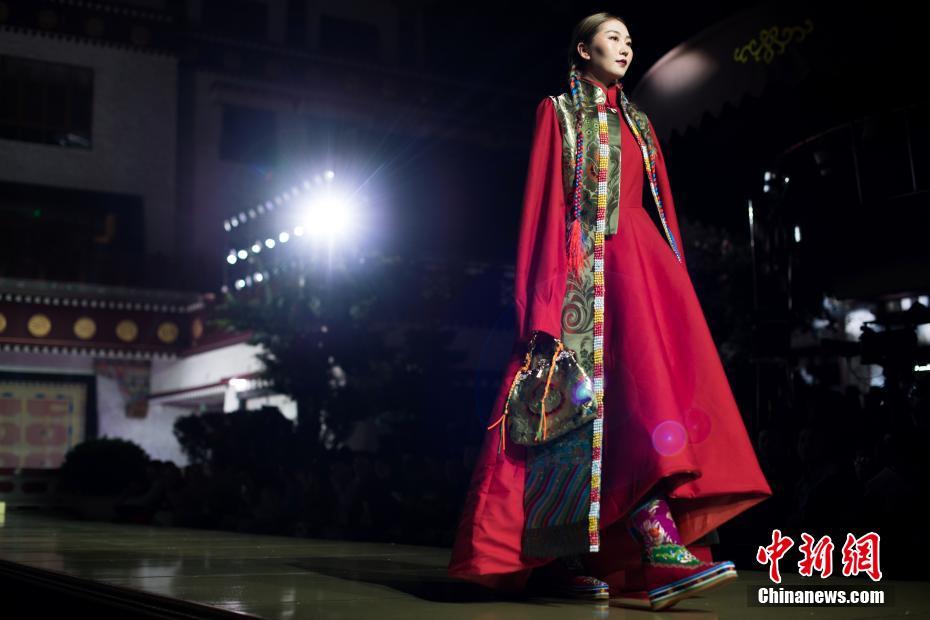 8月12日晚,由西藏職業(yè)技術學院與北京服裝學院共同打造的“凈美雪頓·美好生活”西藏民族服裝與服飾展演活動在拉薩舉行。現(xiàn)場通過傳統(tǒng)篇、現(xiàn)代篇與未來篇三個篇章,展演了藏族傳統(tǒng)服裝26套,設計創(chuàng)新服裝58套,共計84套服裝。圖為模特展示現(xiàn)代設計的創(chuàng)新藏族服飾。中新社記者何蓬磊 攝