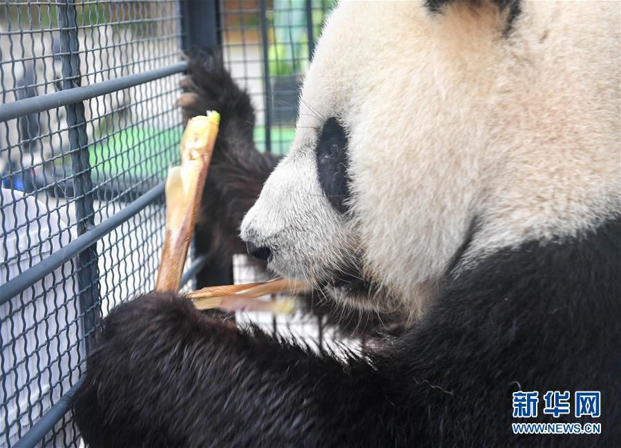 8月20日,大熊貓“嘉嘉”在轉(zhuǎn)運(yùn)籠中等待前往機(jī)場(chǎng)。 新華社記者 許暢 攝