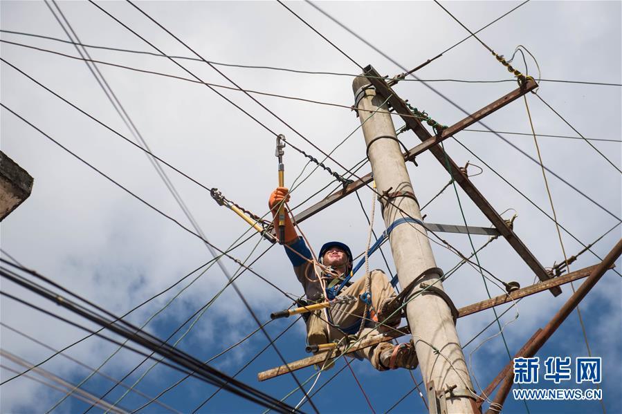 9月5日,麻栗坡縣供電局的工作人員搶修受損電力設備。