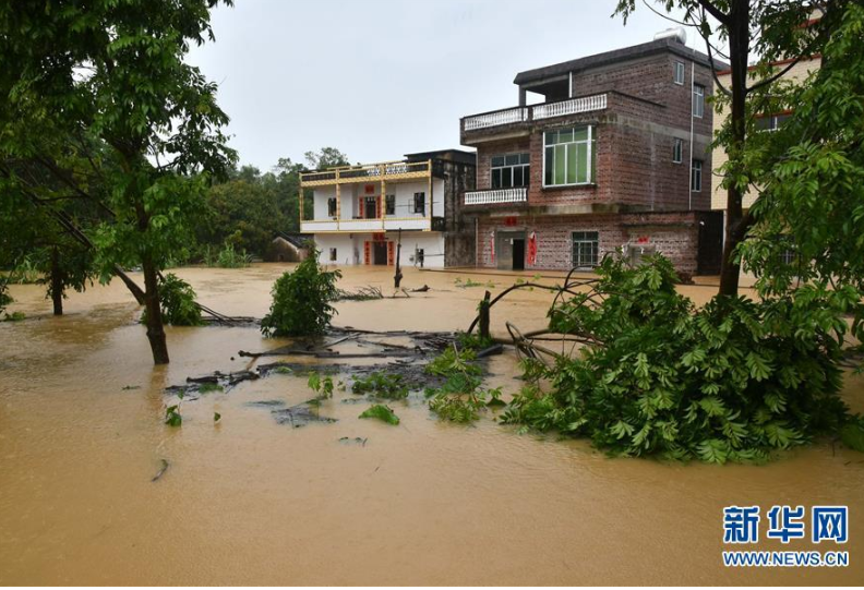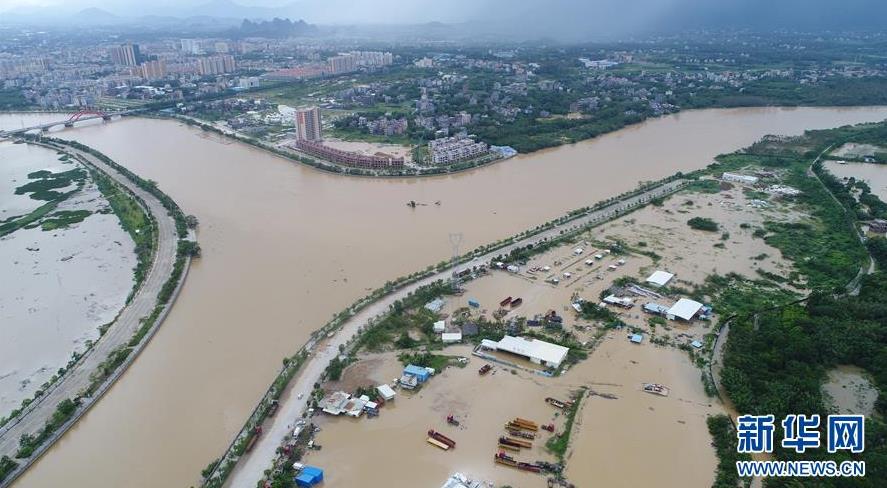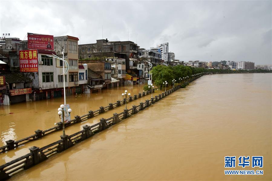 9月18日,陽春市漠陽江畔的街道被洪水淹沒。 新華社記者 周科 攝