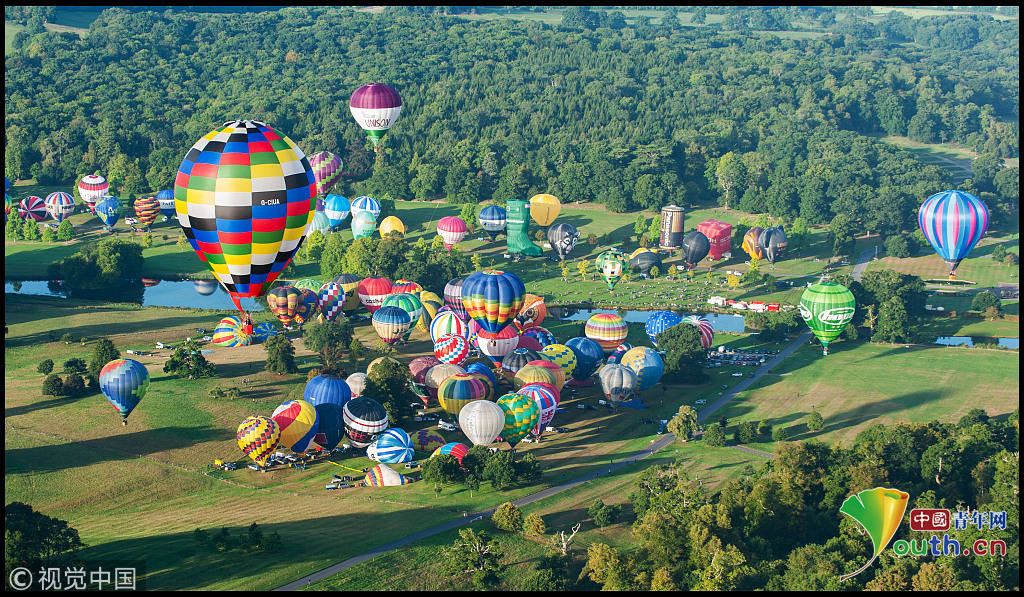 英國(guó)170多只熱氣球齊飛創(chuàng)紀(jì)錄 如田園夢(mèng)幻世界