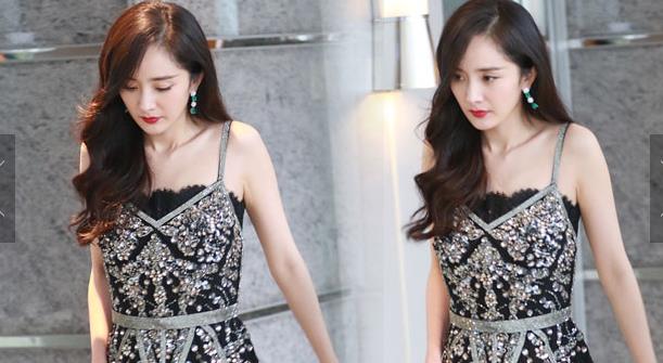 楊冪卷發(fā)成熟美露香肩 自提裙擺過酒 ...