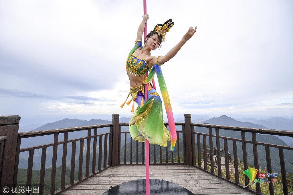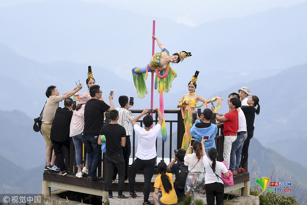 2018年9月20日,中秋節(jié)前夕,位于長三角第一高峰海拔1929米的浙江龍泉山頂,一場(chǎng)柔美的鋼管舞表演吸引了眾人圍觀。