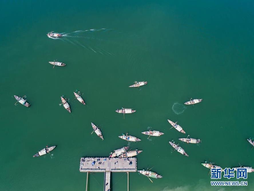 9月18日,漁民們乘坐漁船在富春江里捕撈江鮮(無人機(jī)拍攝)。 當(dāng)日,浙江省杭州市富陽區(qū)場(chǎng)口鎮(zhèn)東梓關(guān)村開啟“江鮮大會(huì)”,數(shù)十艘小漁船一起駛向富春江江面,拉開了秋分節(jié)氣前捕撈江鮮的序幕。 東梓關(guān)村有著1000多年歷史,水陸交通方便,自古就是富春江南岸重要的商貿(mào)集散地,素有富春江“東流第一關(guān)”之稱。隨著近年來美麗鄉(xiāng)村建設(shè)的推進(jìn),東梓關(guān)村著力打造白墻黛瓦的江南民居,同時(shí)依托富春江豐富的江鮮魚類資源,在秋季舉辦特色“江鮮大會(huì)”,通過舉辦江鮮捕撈體驗(yàn)、江鮮第一鍋開鍋、百鮮宴、鄉(xiāng)村小型音樂會(huì)、農(nóng)家菜大賽等活動(dòng),吸引各地游客前來感受富春江漁民豐收的喜悅和江南千年古村的獨(dú)特魅力,推動(dòng)鄉(xiāng)村特色旅游發(fā)展。 新華社記者徐昱攝
