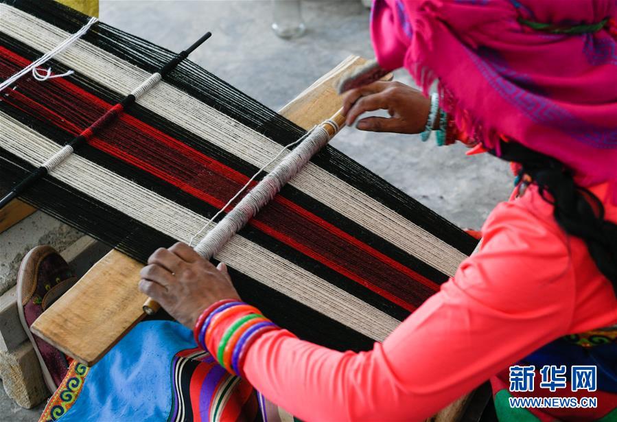 員工卓瑪在鹽湖鄉(xiāng)羌麥村民族手工編織廠工作(9月19日攝)。 2018年,西藏阿里地區(qū)革吉縣鹽湖鄉(xiāng)政府自籌資金成立羌麥村民族手工編織廠,編織廠將當(dāng)?shù)貍鹘y(tǒng)手工編織技藝與市場需求相結(jié)合,生產(chǎn)手提包、圍脖、腰帶、毛毯、藏式頭巾等產(chǎn)品,并參加旅游推介活動(dòng),拓寬編織品銷售渠道,助力當(dāng)?shù)鼐用衩撠殹?新華社記者 劉東君 攝