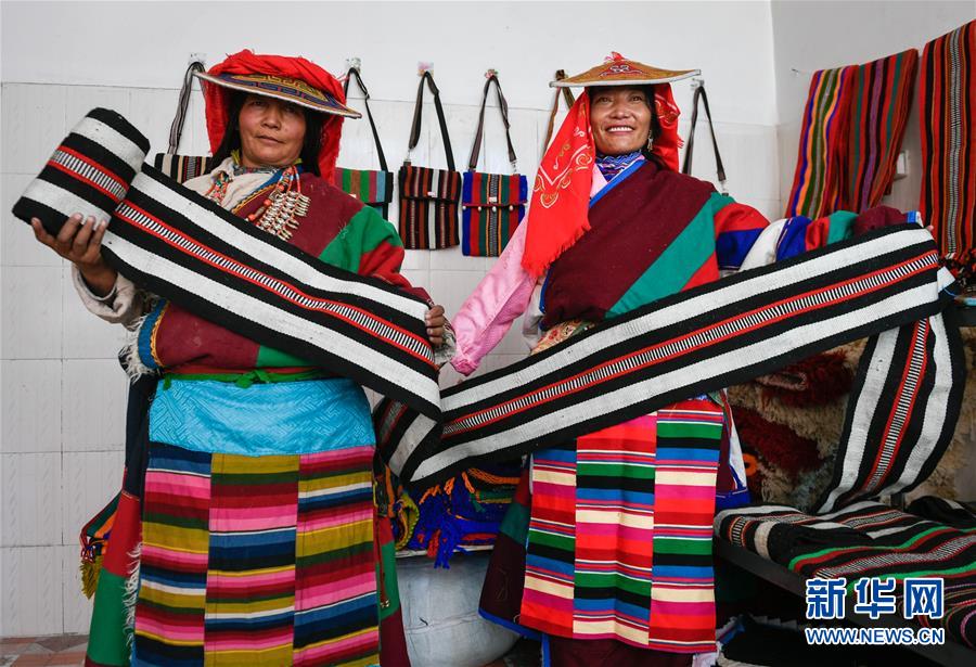 員工益西措姆(左)與嘎措在鹽湖鄉(xiāng)羌麥村民族手工編織廠展示產(chǎn)品(9月19日攝)。 2018年,西藏阿里地區(qū)革吉縣鹽湖鄉(xiāng)政府自籌資金成立羌麥村民族手工編織廠,編織廠將當(dāng)?shù)貍鹘y(tǒng)手工編織技藝與市場需求相結(jié)合,生產(chǎn)手提包、圍脖、腰帶、毛毯、藏式頭巾等產(chǎn)品,并參加旅游推介活動(dòng),拓寬編織品銷售渠道,助力當(dāng)?shù)鼐用衩撠殹?新華社記者 劉東君 攝