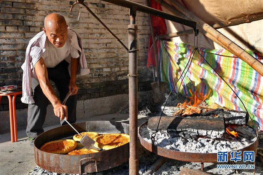 9月22日,段富善在翻看月餅的烘烤情況。 中秋節(jié)來臨之際,山西省晉城市澤州縣南嶺鄉(xiāng)段河村的段富善一家人忙碌起來,他們家制作的“柴火月餅”遠近聞名。 “柴火月餅”起源于明清時期,餡料以糖搭配花生仁、芝麻、玫瑰等,有近10道制作工序,其中最有特色的是木柴烤制工藝,烘烤師傅必須掌握好火候,才能烤出外皮酥脆、餡料飄香的月餅。 新華社記者 曹陽 攝