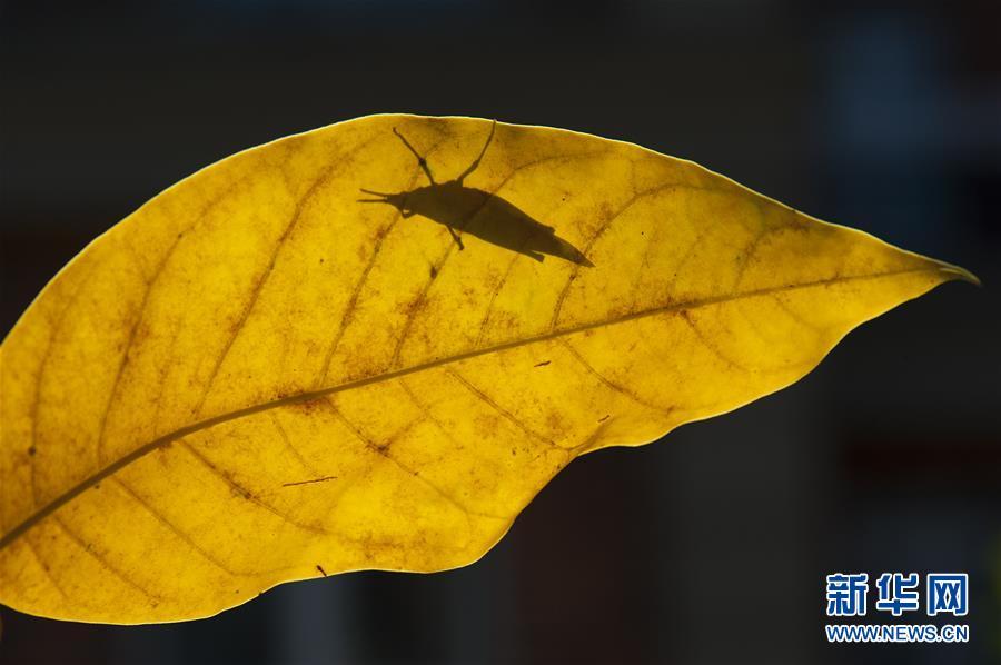 9月24日在上海市松江區(qū)農田里拍攝的蚱蜢。 新華社記者張建松攝