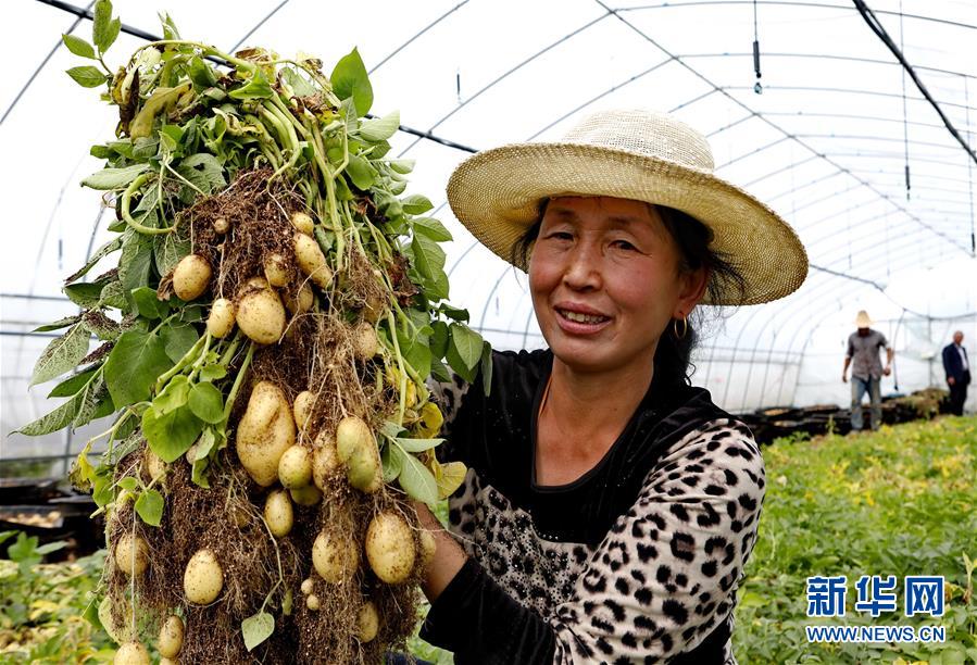 9月23日,張北縣小二臺鎮(zhèn)一家馬鈴薯育種中心的工人在大棚內(nèi)展示收獲的脫毒微型薯。 近年來,地處壩上地區(qū)的河北省張北縣因地制宜,積極推進馬鈴薯產(chǎn)業(yè)化發(fā)展,形成了馬鈴薯繁種育種、商品薯種植、倉儲、加工為一體的產(chǎn)業(yè)鏈,帶動農(nóng)民增收致富。 新華社記者楊世堯攝