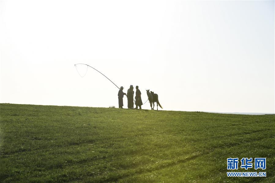 西烏珠穆沁旗草原上的牧民(7月21日攝)。盛夏時(shí)節(jié),內(nèi)蒙古錫林郭勒草原一碧千里,遙接天際。藍(lán)天白云之下,牛羊悠閑自在,馬群奔馳其中,風(fēng)光旖旎。 新華社記者 劉磊 攝