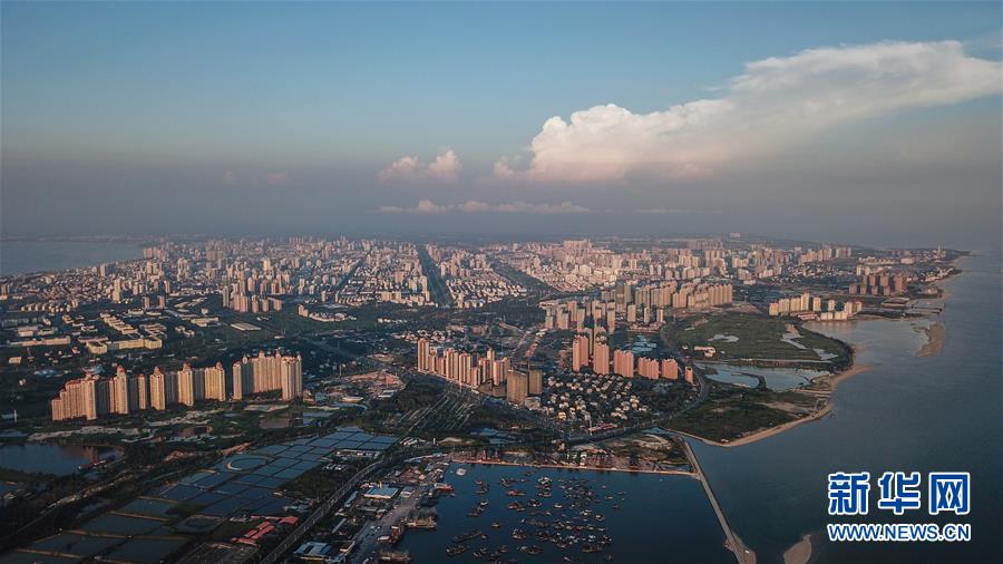 這是夕陽下的廣西北海市區(qū)(9月25日無人機(jī)拍攝,拼接照片)。 新華社記者 黃孝邦 攝