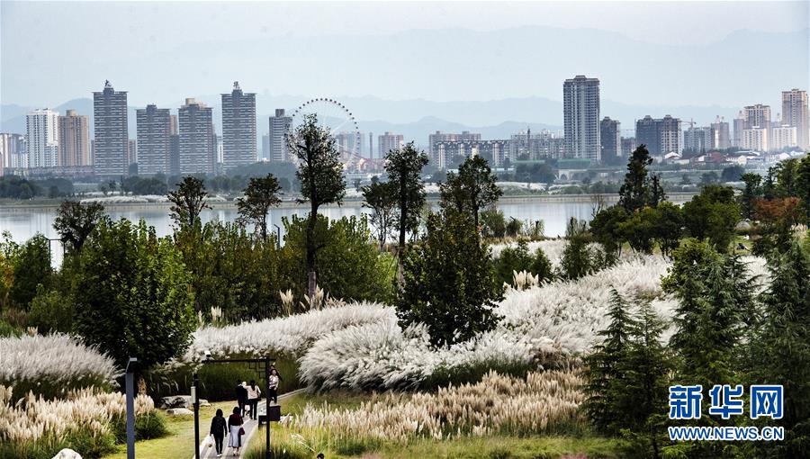 9月28日無人機拍攝的漢中市漢江濕地公園。新華社記者陶明 攝
