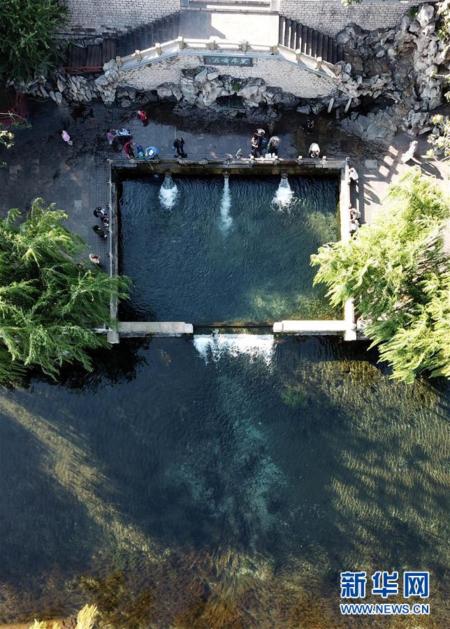 9月30日,游客在免費(fèi)開放的濟(jì)南市黑虎泉游覽(無人機(jī)拍攝)。近年來,山東積極推進(jìn)國有景區(qū)免費(fèi)開放工作,截至目前,山東實(shí)現(xiàn)免費(fèi)開放的國有景區(qū)已達(dá)286處。新華社記者徐速繪攝