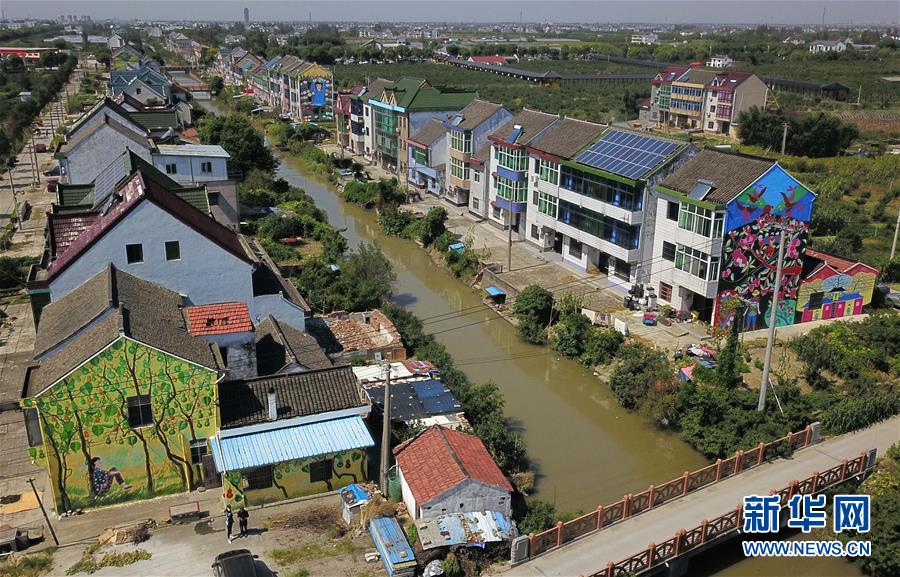 這是10月1日無(wú)人機(jī)拍攝的上海金山區(qū)呂巷鎮(zhèn)和平村風(fēng)貌。新華社記者任瓏攝