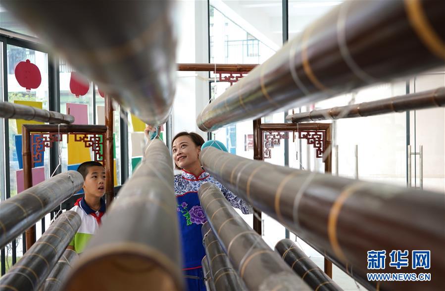 10月8日,崇義縣竹樂樂團的演員在教學(xué)生演奏竹板琴。 近年來,江西省崇義縣思源實驗學(xué)校定期開設(shè)竹樂課,邀請崇義縣竹樂樂團的演員教授學(xué)生演奏竹排琴、竹板琴等竹樂樂器,激發(fā)學(xué)生了解傳統(tǒng)文化的熱情。 新華社記者胡晨歡攝