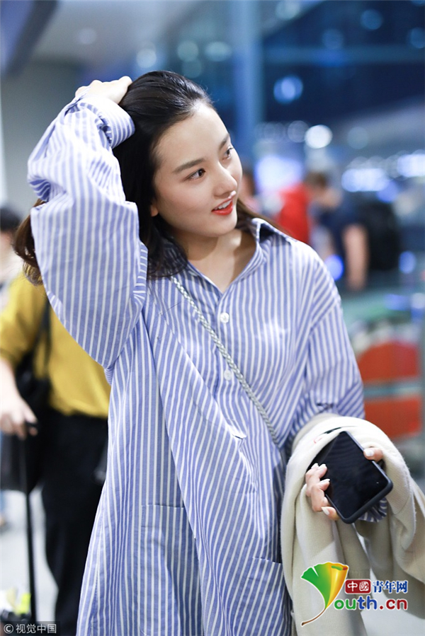 10月9日,宋祖兒現(xiàn)身機(jī)場,從北京飛往上海。她穿“病號(hào)服“襯衫清純可愛,只挎小包趕路輕松又時(shí)尚,機(jī)場撩發(fā)甜笑變“漫畫少女”惹人愛。