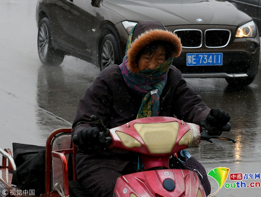 市民雨雪中出行。圖片作者 /視覺(jué)中國(guó)
